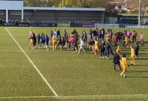 فوضى عارمة.. شجار عنيف بين لاعبي فريقين (فيديو)