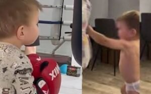 طفل روسي في الثانية من عمره يبهر الجمهور بمهاراته في الملاكمة