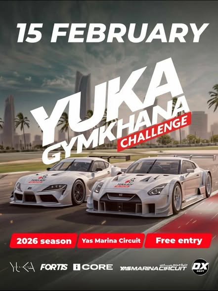 تحتضن مدينة أبوظبي، الإمارات العربية المتحدة منافسات رياضة المحركات في حلبة مرسى ياس حيث يعود تحدي YUKA Gymkhana ليقدّم مفهوماً جديداً لرياضة المحركات في أبوظبي يوم 15 فبراير على حلبة مرسى ياس. يقام الحدث من 19:00 وحتى منتصف الليل مع دخول مجاني، جامعاً بين المنافسة الرياضية وأجواء المهرجانات.