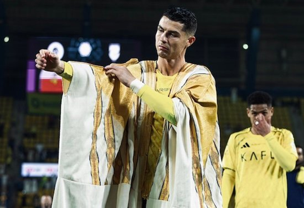 وخلال الاحتفال بالفوز، تلقى رونالدو “البشت” من أحد إداريي نادي النصر، ليرتديه ويواصل الاحتفالات مع الجماهير.