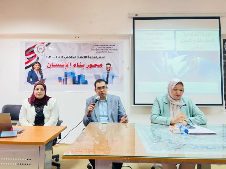 نظم مجمع اعلام السويس بالتعاون والتنسيق مع جامعه السويس بتوجيهات الاستاذ الدكتور اشرف حنيجل رئيس الجامعة ندوة ثورة تكنولوجيا المعلومات والتحول الرقمى بكلية الحاسبات والمعلومات ج السويس