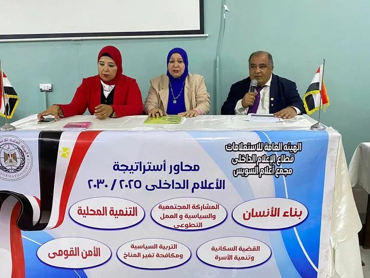 نظمت إدارة اعلام السويس ندوة حول المتغيرات الإقليمية والدولية الراهنة وتأثيرها على الأمن القومى بمعهد القناة العالى للهندسة والتكنولوجيا بالسويس فى إطار استراتيجيه الإعلام الداخلى ٢٠٣٠/٢٠٢٥ محور الأمن القومى لقطاع الاعلام الداخلى الهيئة العامة للاستعلامات برئاسة معالى السفير علاء يوسف رئيس الهيئة العامة للاستعلامات وبتوجيهات الدكتور أحمد يحيى رئيس قطاع الإعلام الداخلى