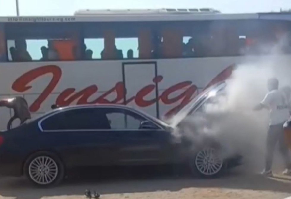 وتداول مستخدمون عبر منصة “X” صورا تظهر أحمد شوبير يقف بعيدا عن السيارة، حيث توقف العديد من المواطنين لإطفاء الحريق الذي اندلع بقوة في محركها.