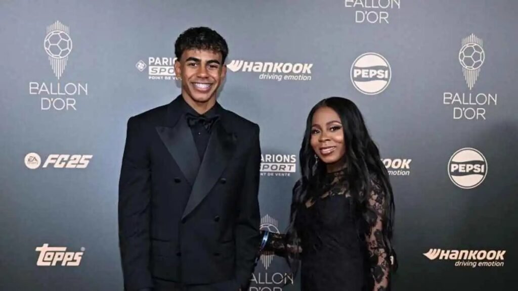 ونشرت والدة لامين صورا لها مع نجلها في حفل الكرة الذهبية عبر حسابها على منصة “إنستغرام” وعلقت: “مرة أخرى ينفجر قلبي فخرا بك يا طفلي رؤيتك تكبر وتحقق أحلامك تملأ روحي سعادة سنكون دائما إلى جانبك في كل خطوة تخطوها”.