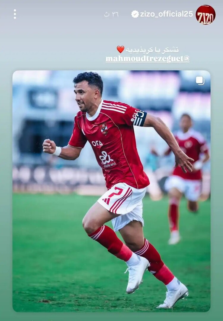 كما نشر زيززو صورة عبر حسابه بموقع “إنستغرام” لزميله محمود حسن “تريزيغيه” موجها له الشكر على هدف الفوز وعلق برسالة قائلا: “مبروك يا أبطال”.