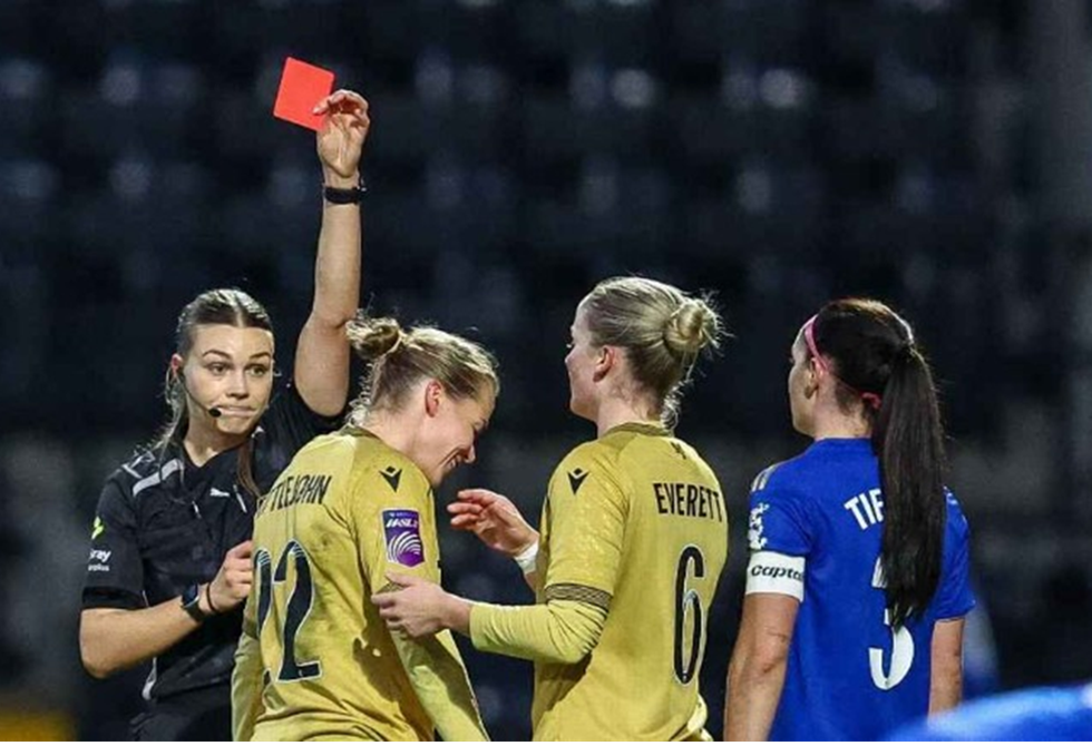 ولم يكن واضحا ما إذا كانت ليتلغون قد تعثرت بزميلة أخرى أثناء شجارها مع كين، لكن تصرفها لم يترك للحكم خيارا سوى إشهار البطاقة الحمراء المباشرة.