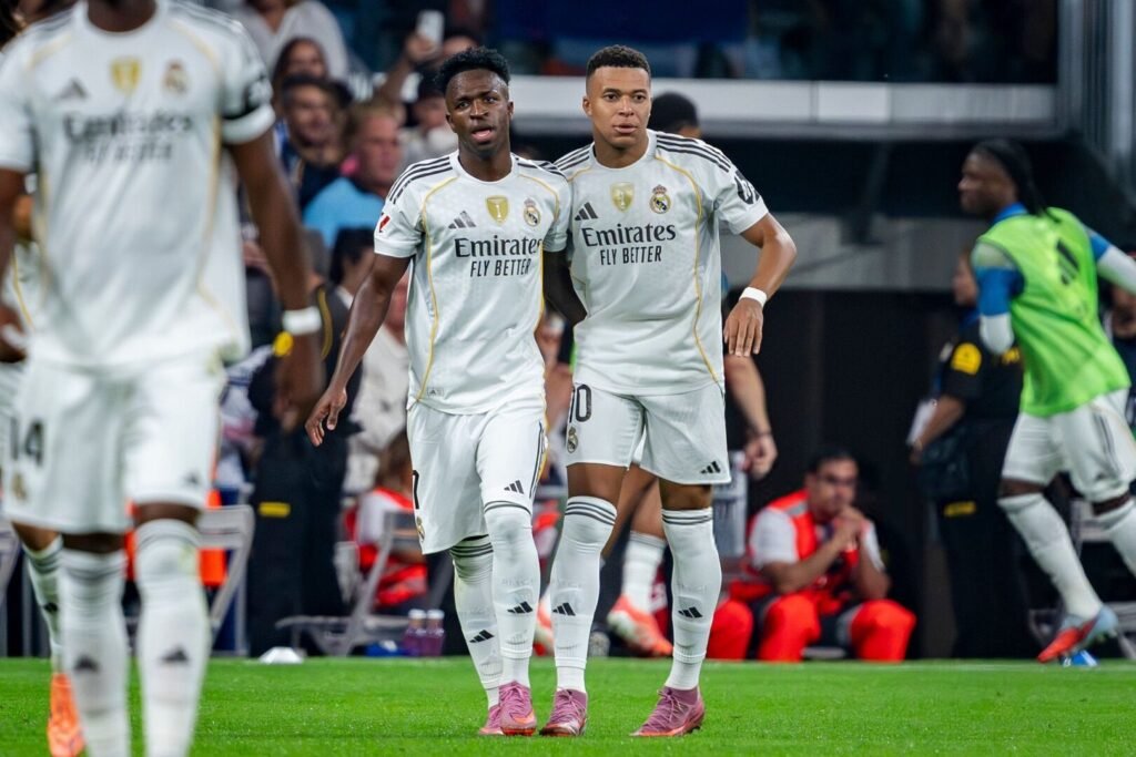وسجل مبابي أول هدفين “للميرنغي” أحدهما من ركلة جزاء ثم حصل صاحب الأرض على ركلة جديدة وتركها لزميله فينيسيوس لكن الجناح البرازيلي أهدرها قبل أن يسجل بعدها بقليل جود بيلينغهام الهدف الثالث قبل الاستراحة وسجل ألفارو كاريراس الهدف الرابع.