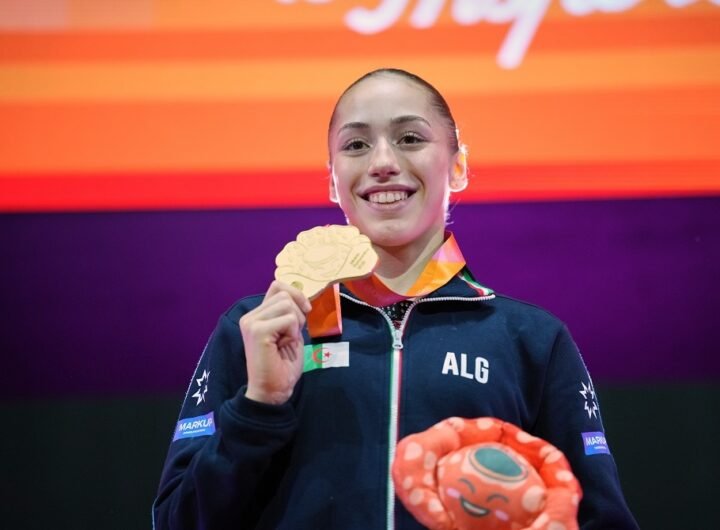 النجمة الجزائرية كيليا نمور تفوز بذهبية بطولة العالم للجمباز (فيديو) النجمة الجزائرية كيليا نمور تفوز بذهبية بطولة العالم للجمباز (فيديو) وتمكنت البطلة الأولمبية كيليا نمور، من نيل علامة 15.566، عن أدائها في هذه المنافسة، ما جعلها تحصد...اقراء المزيد