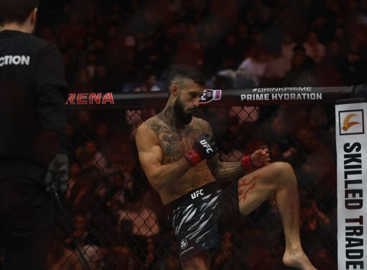 أسقط المقاتل الكندي منافسه بضربة قوية بالركبة قبل أن يقوم بإخضاعه بطريقة الخنق في الجولة الأولى للنزال...