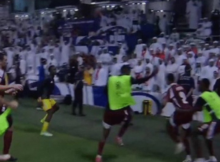 مشاهد مؤسفة في مباراة قطر والإمارات (فيديو) مشاهد مؤسفة في مباراة قطر والإمارات (فيديو) ففي الدقيقة 74، وخلال احتفال لاعبي قطر بهدفهم الثاني عن طريق بيدرو ميغيل، نزل عدد من مشجعي...اقراء المزيد