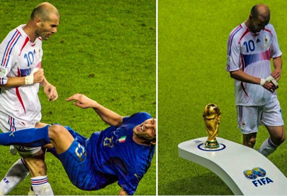 وشهدت المباراة التي جمعت فرنسا وإيطاليا في التاسع من يوليو 2006، وتحديدا في الدقيقة 110 من عمر الوقت الإضافي، بينما كانت النتيجة تشير إلى تعادل المنتخبين 1-1، فقدان كابتن منتخب فرنسا لما يشتهر به من وقار، لتسود لحظة من الجنون خلفت صدمة عالمية.